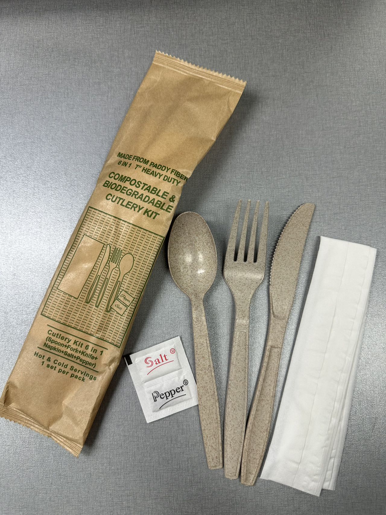 7" HD Bio 6 in1 Cutlery Kit (F,K,SS,1ply Napkin,P&S) 250/cs