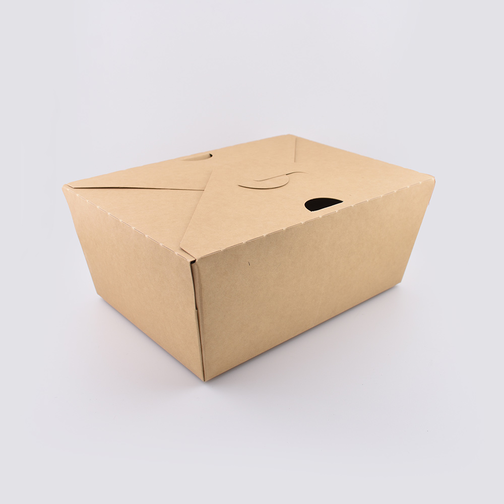 Made from recycled paperboard, these durable takeout boxes feature a grease- and moisture-resistant lining, making them ideal for both hot and cold foods. The classic, stackable, one-piece design requires no assembly and provides an upscale appearance. Flaps open wide for easy access. Boxes retain heat, vent steam, and resist leaks—perfect for items with sauces or gravies. They tolerate moderate heat-lamp exposure and help convey an eco-friendly message to your guests. Packaged in recyclable paperboard and polyolefin plastic wrap—please recycle where facilities exist.