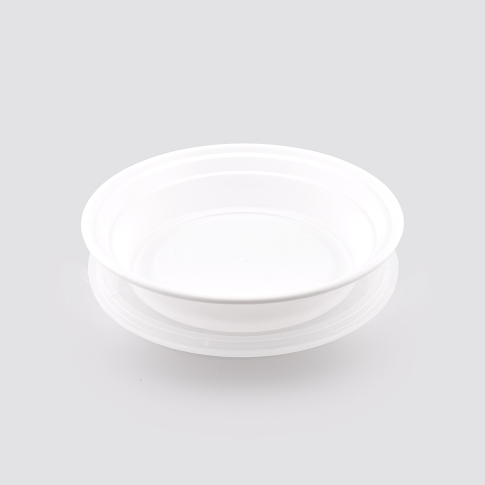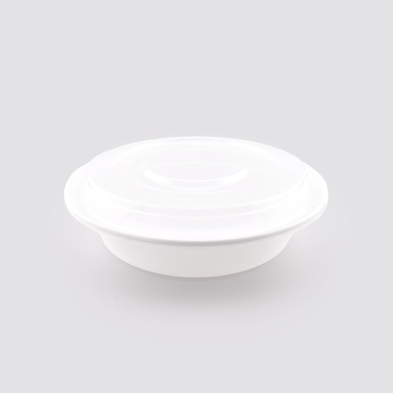 This product is a 24oz white round food container with a single compartment, perfect for serving smaller meals, side dishes, or desserts. Made from BPA-free, food-safe polypropylene, this durable container is microwave, freezer, and dishwasher safe, allowing for a full range of hot and cold food applications. Its leak-proof lid ensures safe transport without spills, while the stackable design helps maximize storage efficiency in busy kitchens or during delivery. With clean aesthetics and strong toughness, this container is an excellent choice for foodservice operations looking for reliability and sustainability. Each case contains 150 sets with matching translucent lids.